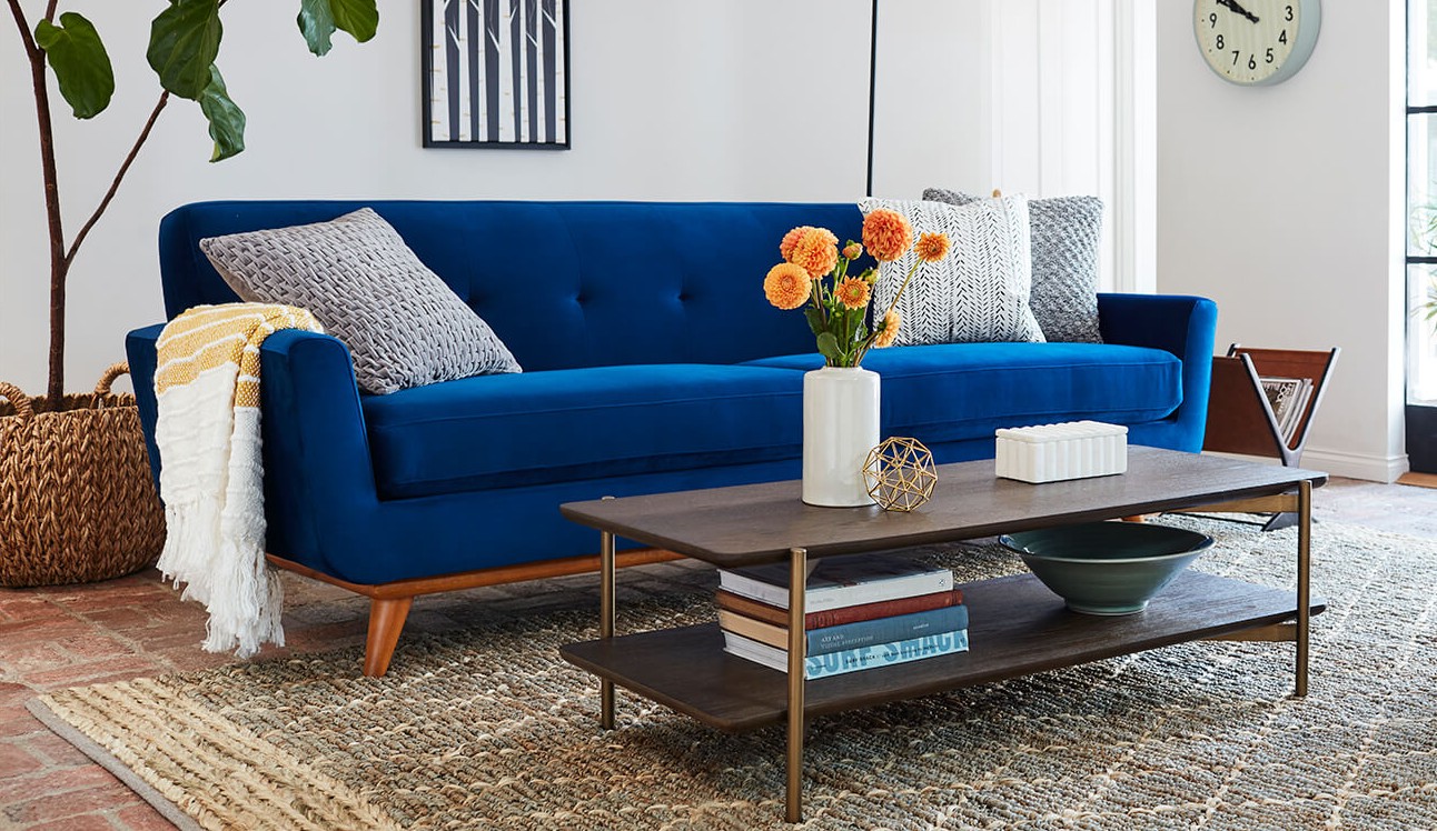 Las mesas de centro y auxiliares deben acompañar el carácter alegre del salón. Opta por maderas claras, lacados en blanco o mesas con detalles en colores vivos. Los diseños redondeados, además de ser visualmente más suaves, favorecen un ambiente acogedor y desenfadado.